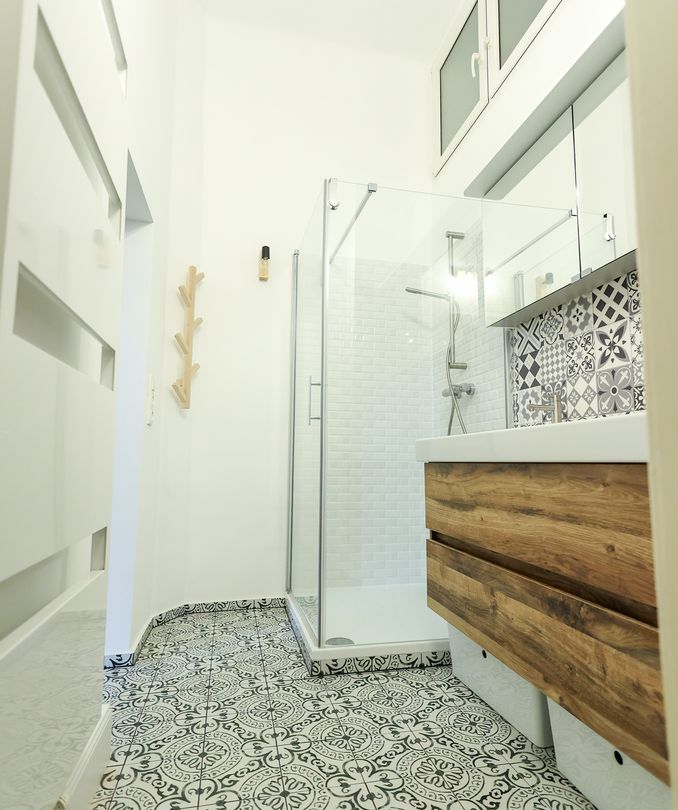 In diesem Projekt haben wir ein Badezimmer komplett neu gestaltet: Eine moderne Dusche ersetzt die alte Badewanne und das Waschbecken wurde für eine optimierte Raumnutzung versetzt. Die Wände erhielten einen frischen Anstrich und der Boden wurde sorgfältig geschliffen und versiegelt, um Langlebigkeit und Ästhetik zu gewährleisten.
