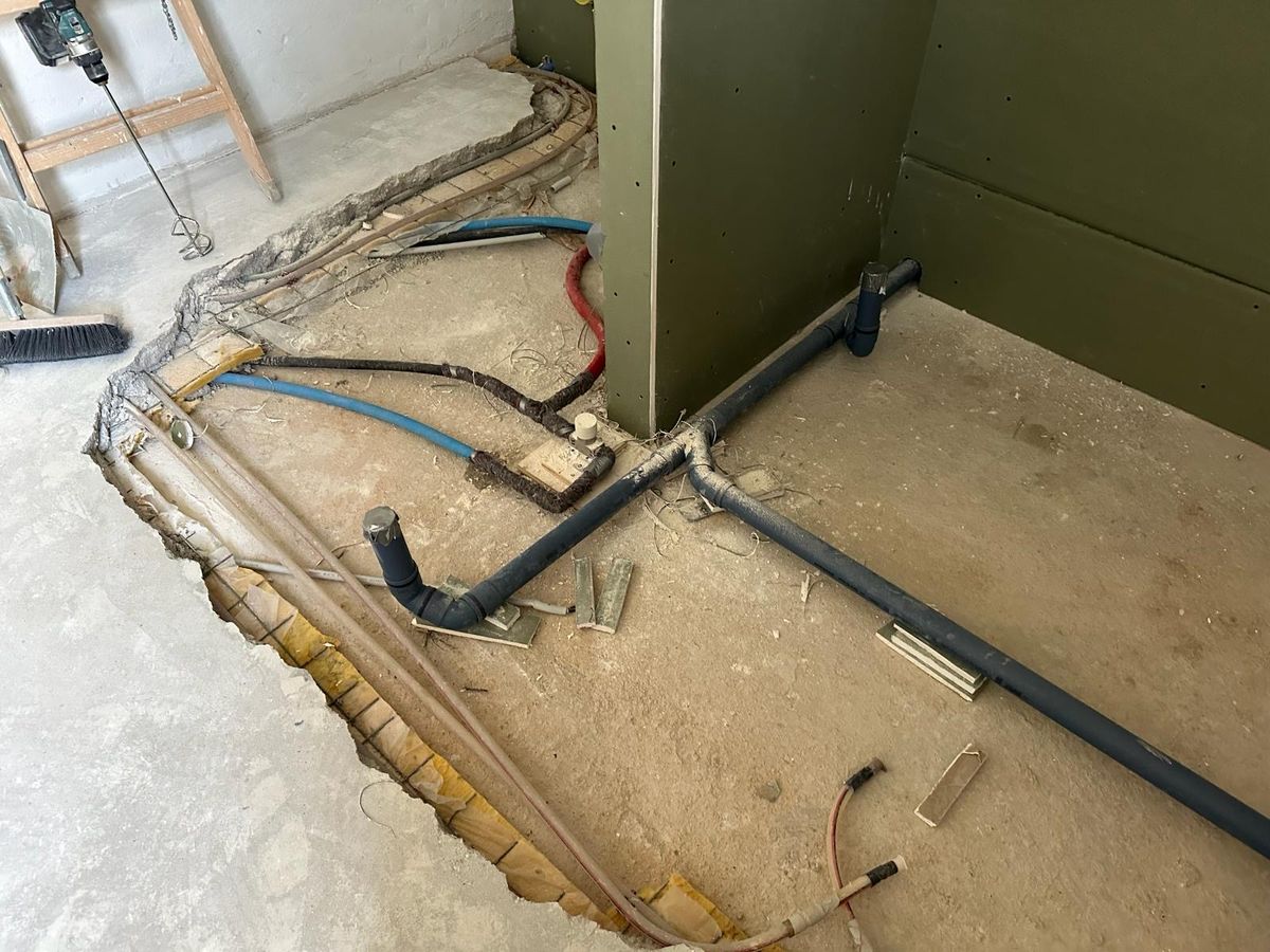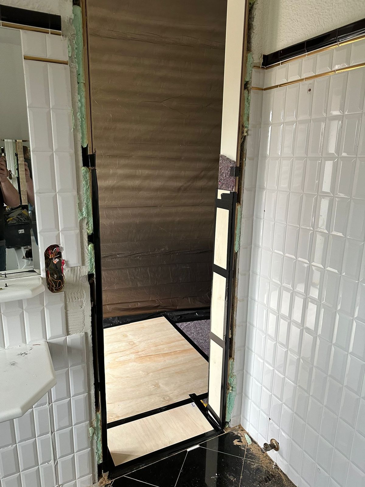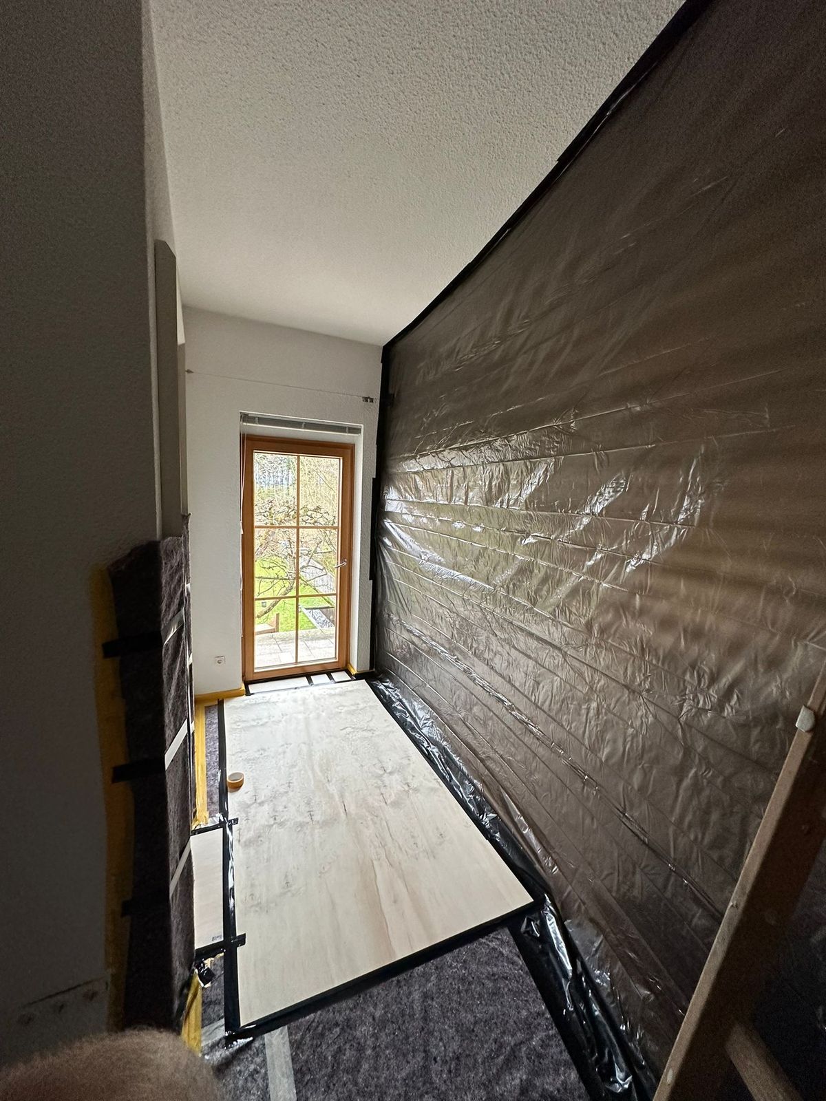 Während der Sanierungsarbeiten legten wir großen Wert darauf, dass angrenzende Räume weiterhin genutzt werden konnten. Durch sorgfältige Abdeckungen und Schutzmaßnahmen wurden Staub und Schäden während des Abbruchs und Transports der alten Fliesen und Badewanne vermieden.