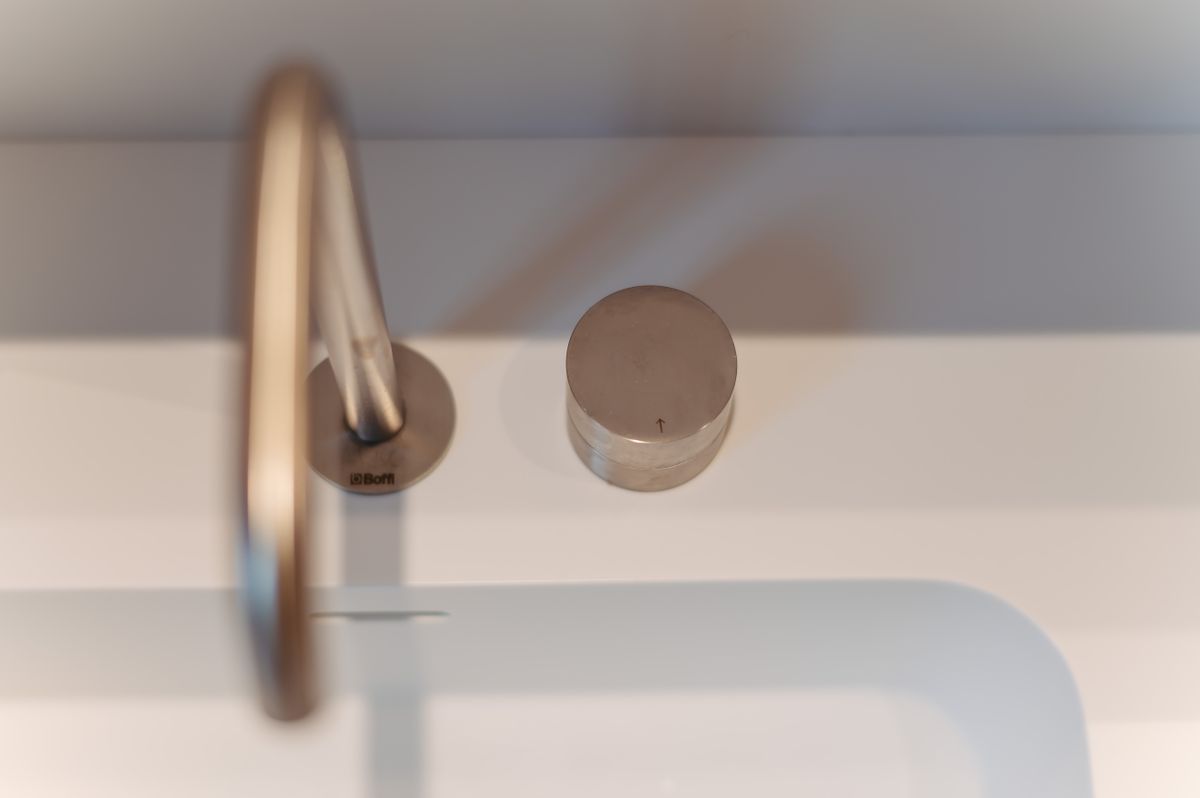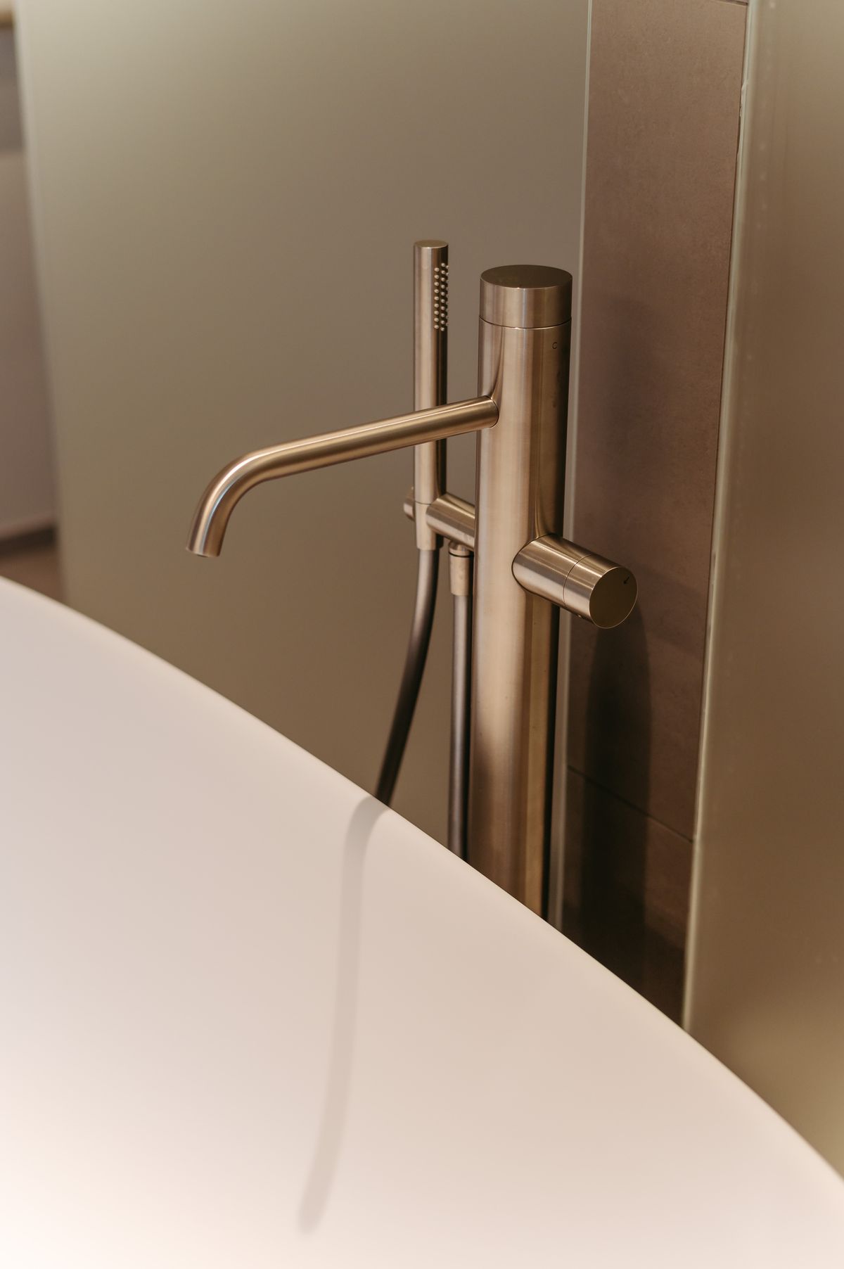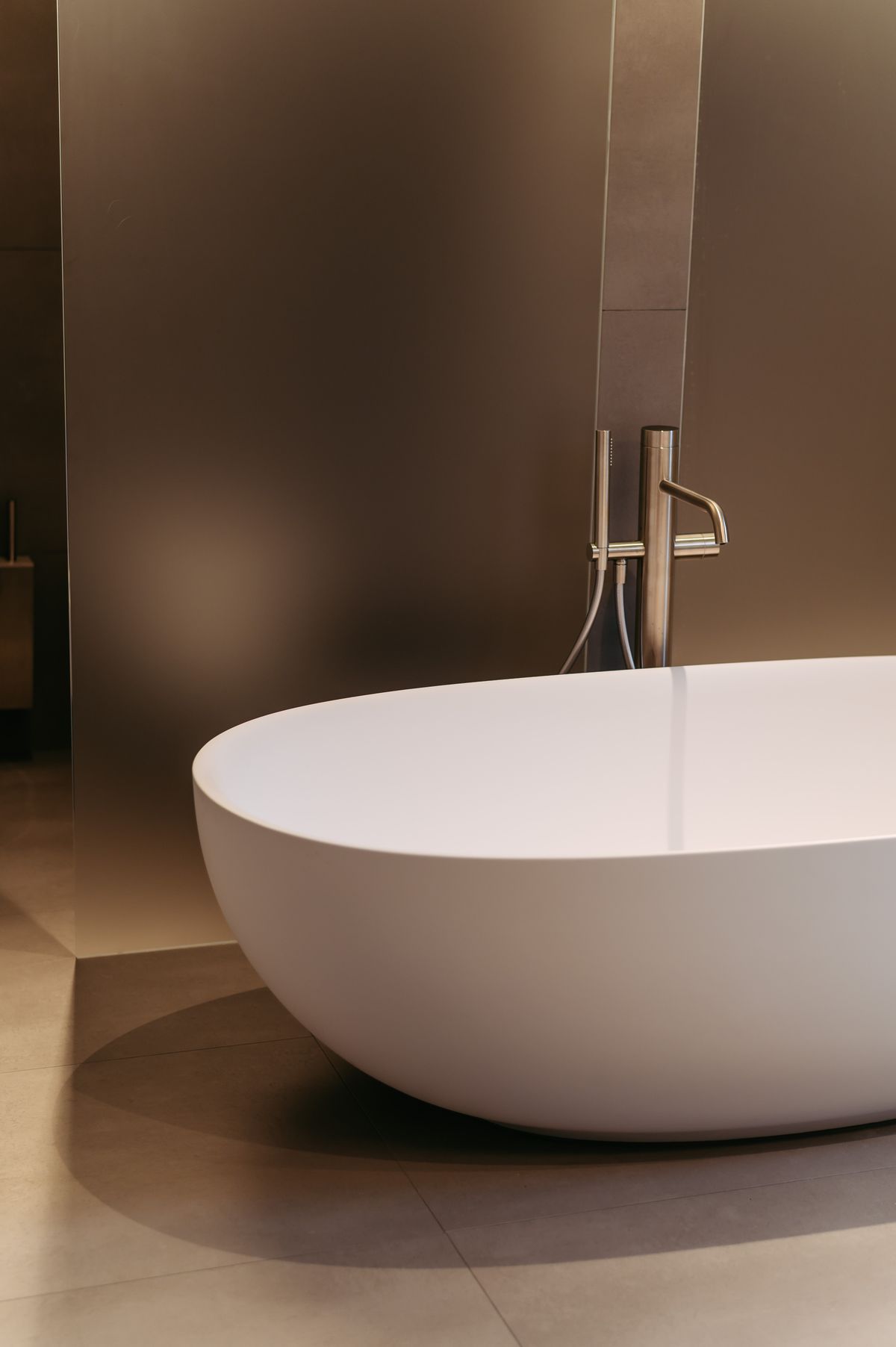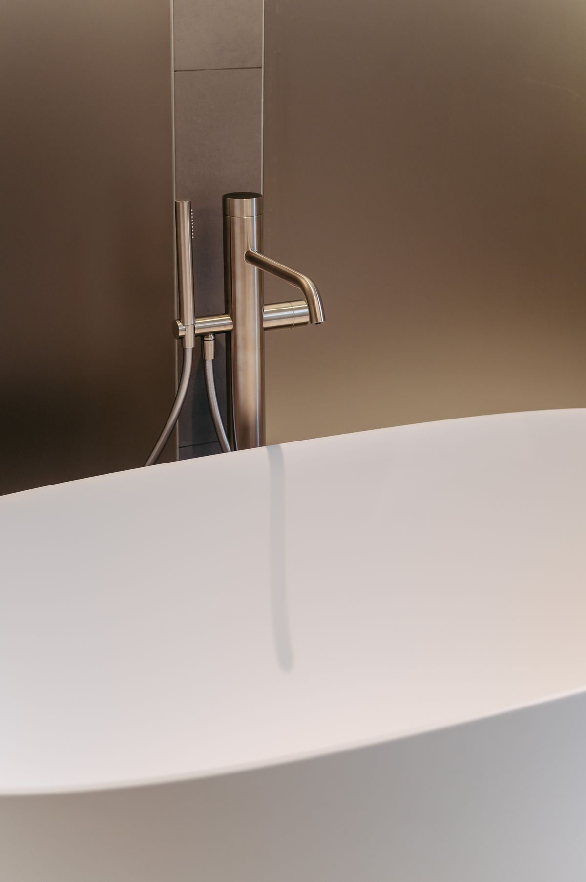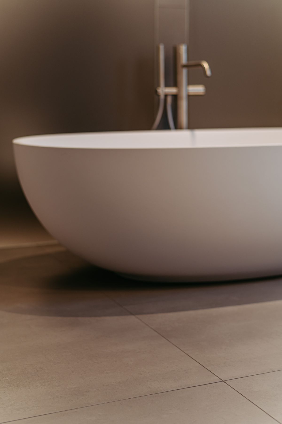 Das neue Highlight ist die freistehende Badewanne, die das Zentrum des Raumes bildet und zum Entspannen einlädt. Neben dem WC wurde ein Bidet installiert, um den Komfort zu erhöhen. Der geräumige Waschtisch mit Doppelwaschbecken bietet viel Stauraum und fügt sich nahtlos in das minimalistische Design ein. Alle Arbeiten wurden in enger Zusammenarbeit mit dem Architekten durchgeführt, um Funktionalität und Ästhetik optimal zu verbinden.