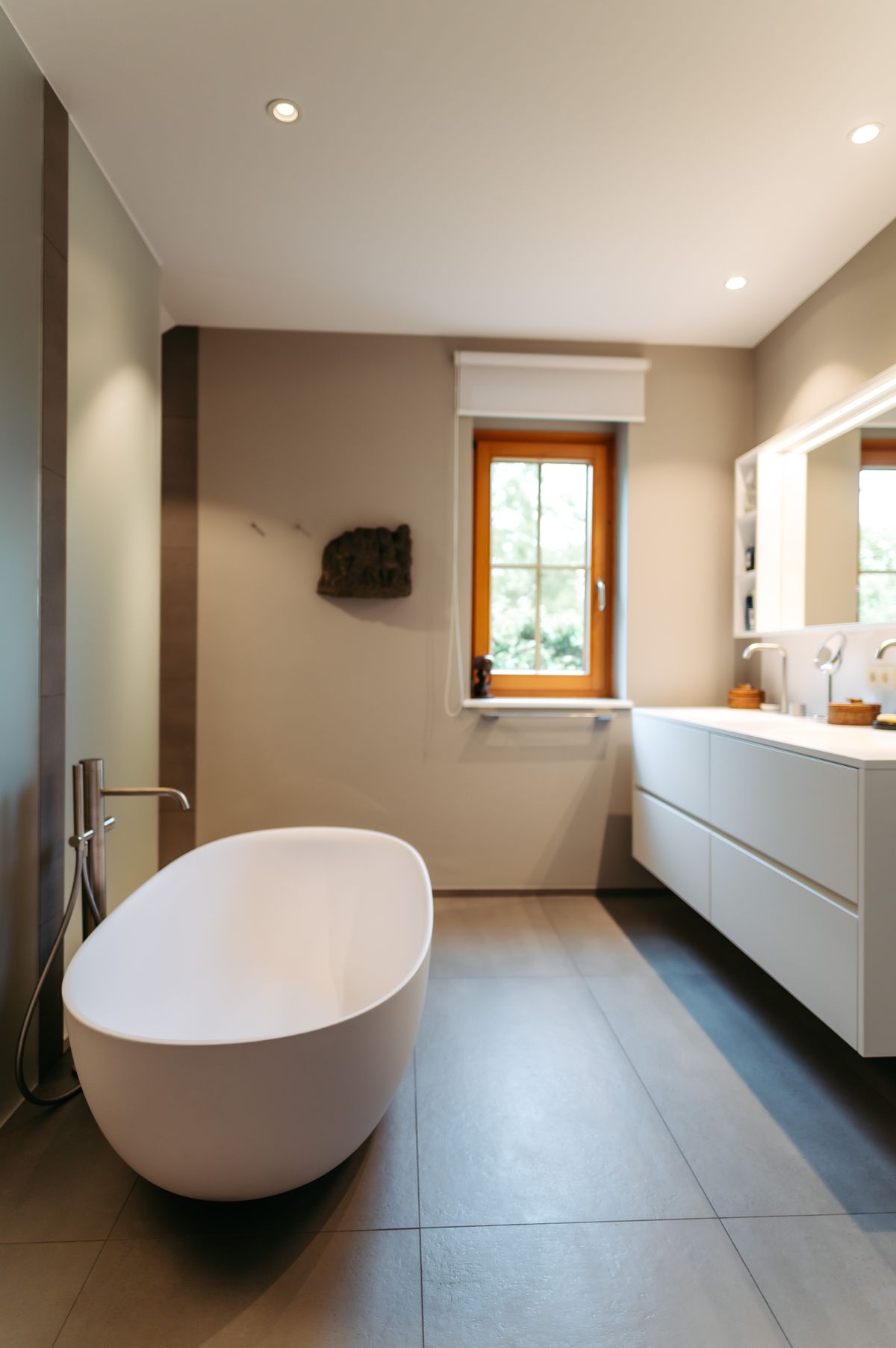 In diesem umfassend sanierten Badezimmerprojekt wurde das alte Bad vollständig entfernt, um Platz für moderne Innovationen zu schaffen. Hochwertige Fliesen, sorgfältig ausgewählt und verlegt in Abstimmung mit dem Architekten, vervollständigen das stilvolle und funktionale Design dieses außergewöhnlichen Badezimmers. Ein besonderes Highlight ist die neue, freistehende Badewanne, die mit ihrem eleganten Design das Entspannungsambiente perfekt abrundet.